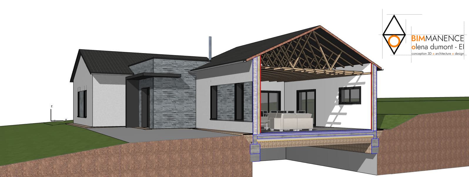 - la maquette numérique 3D intelligente de votre projet et tous les documents graphiques qui en découlent (plans, coupes, façades, perspectives),